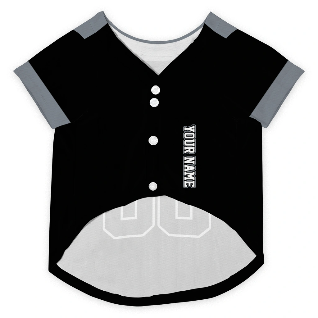 Give your pup a professional athletic look with our Custom Black Black Tail Hem Classic Style Dog Jersey – Personalized Name And Number. Perfect for game days or daily walks, this breathable shirt combines sports style with personalized comfort.