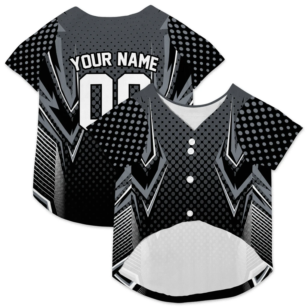 Give your pup a professional athletic look with our Custom Black Chevron Polka Classic Style Dog Jersey – Personalized Name And Number. Perfect for game days or daily walks, this breathable shirt combines sports style with personalized comfort.