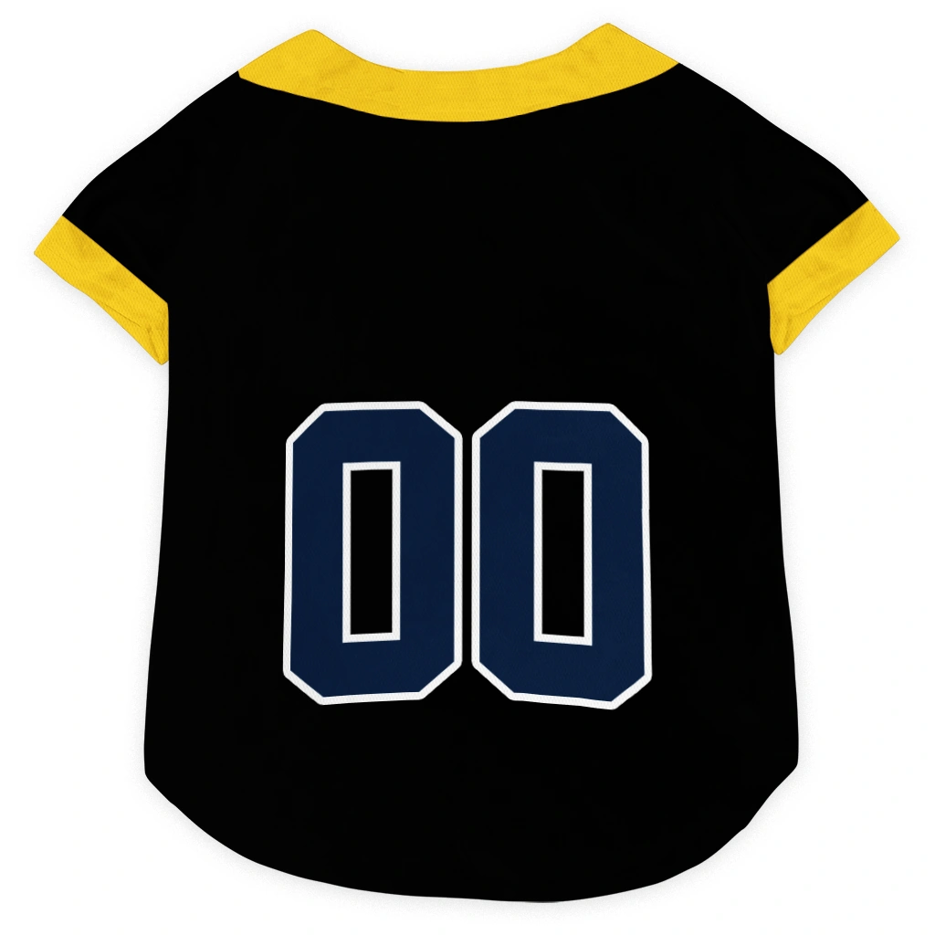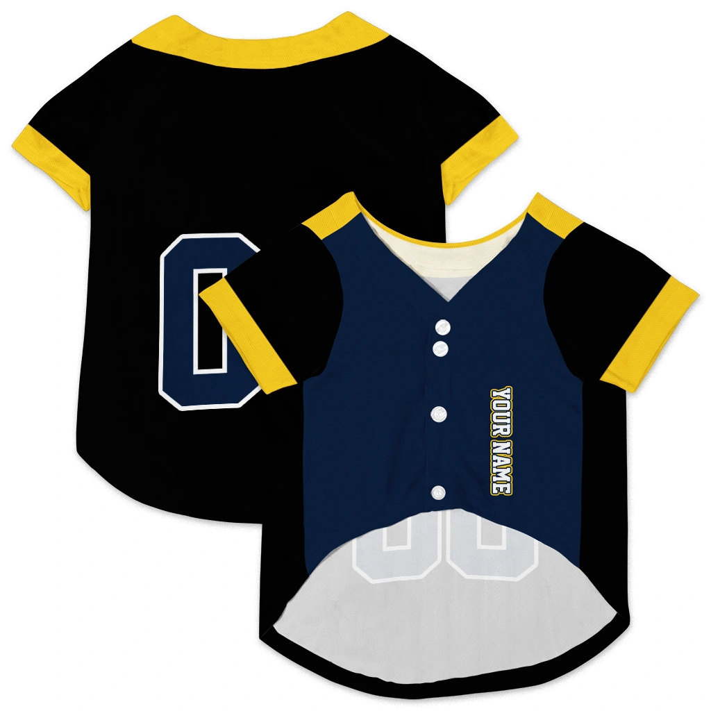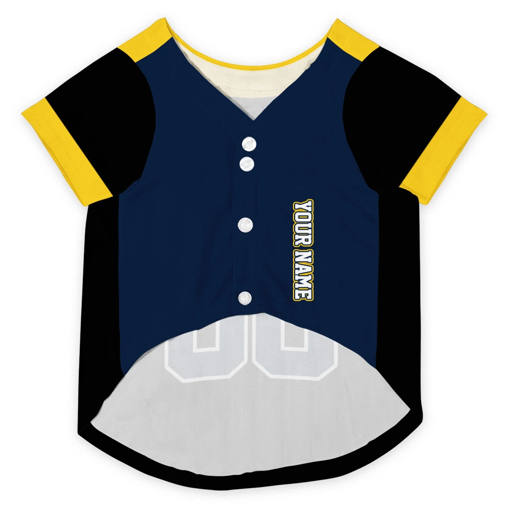 Give your pup a professional athletic look with our Custom Blue Black Tail Hem Classic Style Dog Jersey – Personalized Name And Number. Perfect for game days or daily walks, this breathable shirt combines sports style with personalized comfort.
