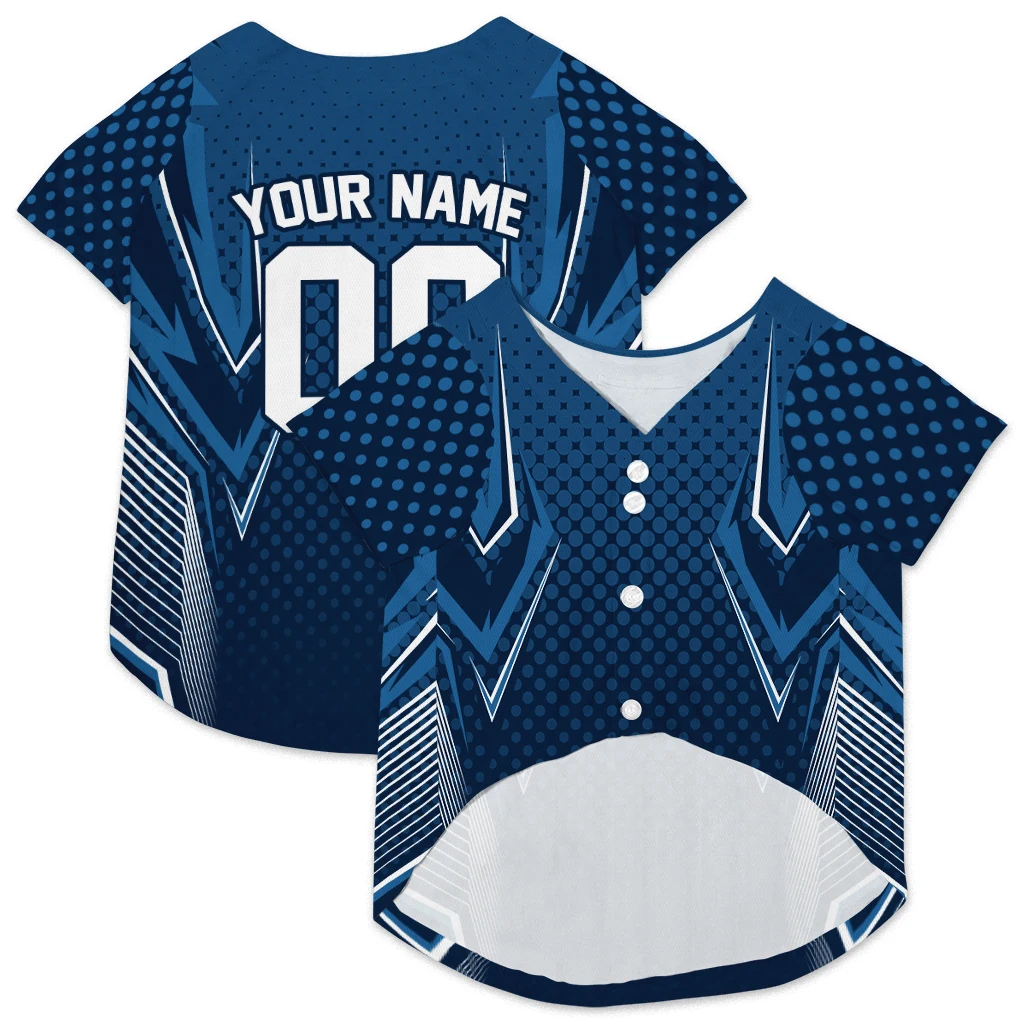 Custom Midnight Blue Chevron Polka Classic Style Dog Jersey – Personalized Name And Number