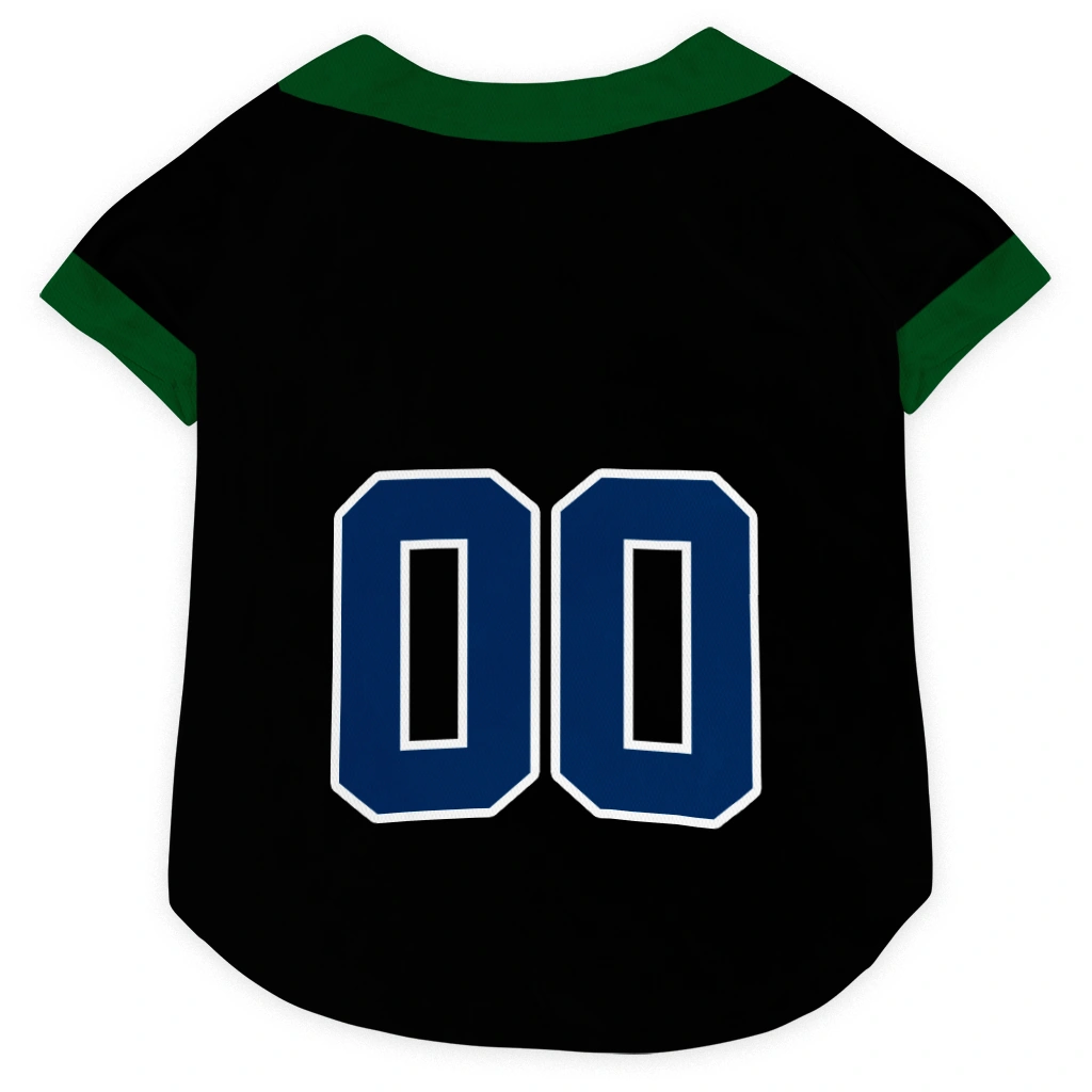 Give your pup a professional athletic look with our Custom Navy Black Tail Hem Classic Style Dog Jersey – Personalized Name And Number. Perfect for game days or daily walks, this breathable shirt combines sports style with personalized comfort.