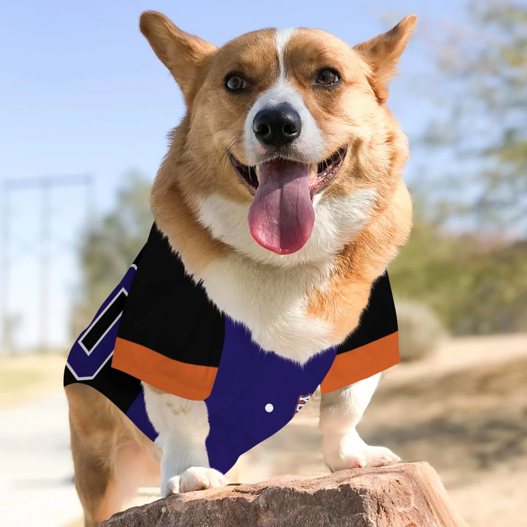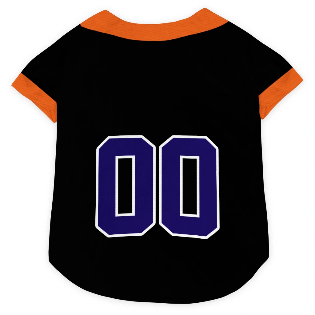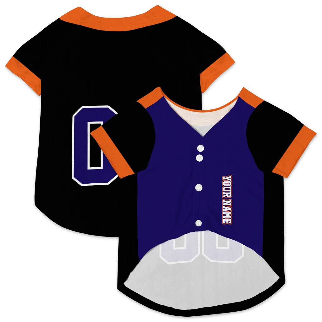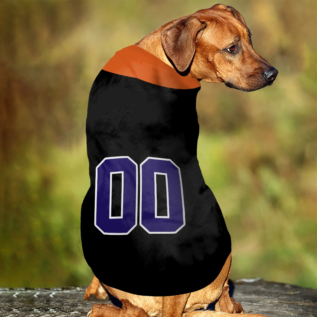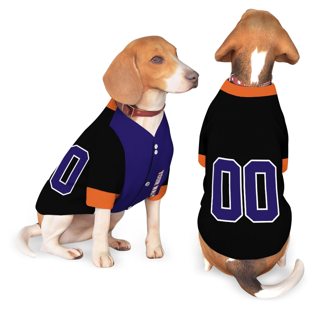 Give your pup a professional athletic look with our Custom Purple Black Tail Hem Classic Style Dog Jersey – Personalized Name And Number. Perfect for game days or daily walks, this breathable shirt combines sports style with personalized comfort.